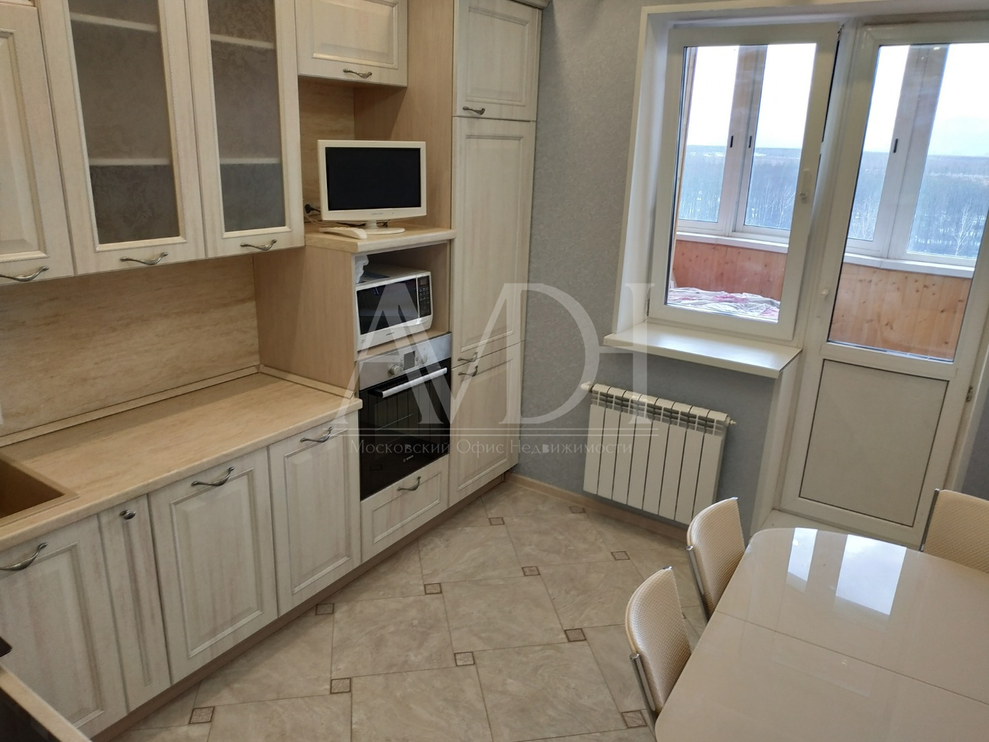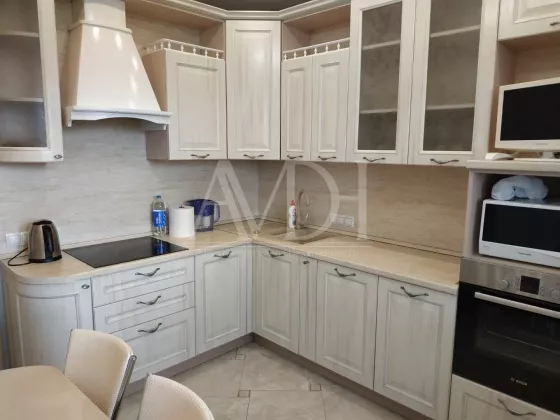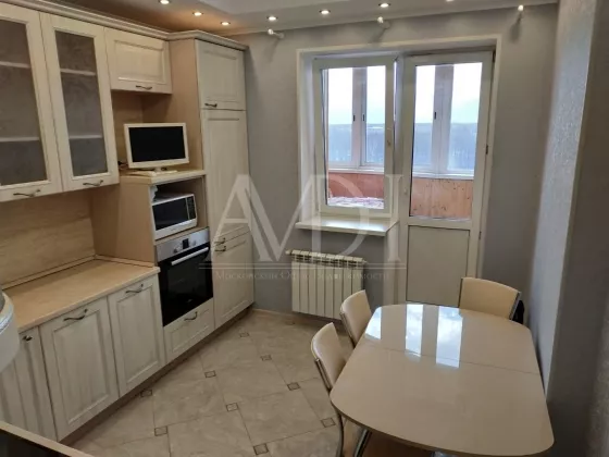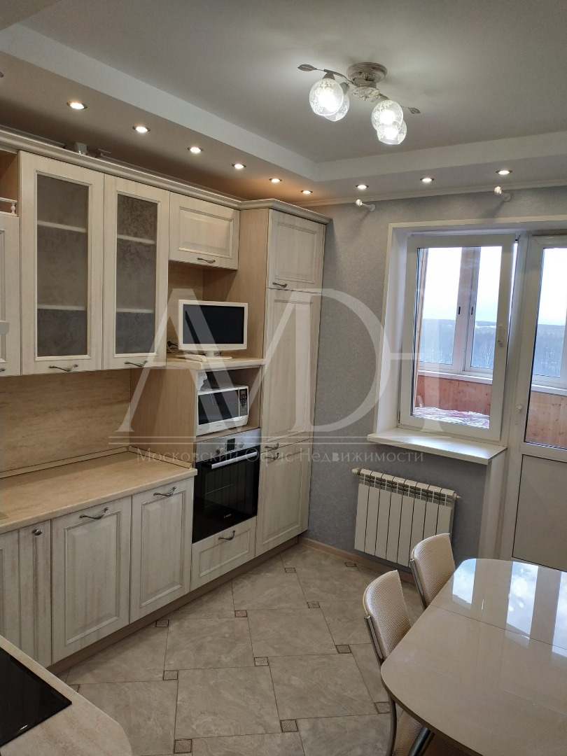 Сдается 1-комнатная квартира на 10-м этаже 17-ти этажного монолитно-кирпичного дома в г. Щелково, ул. Чкаловская, д. 1. Общая площадь 44 м², кухня 10 м², жилая 20 м². Квартира с качественным евроремонтом, всё делали для себя, никто не проживал ещё. Во всей квартире двухуровневые потолки с подсветкой. В комнате выполнено практичное зонирование помещения с помощью прозрачных дверей купе (делится на гостиную и спальню). В прихожей вместительная гардеробная, установлен видеодомофон. На кухне встроенная техника: холодильник, посудомоечная машина, духовой шкаф, варочная панель. Помимо этого есть стиральная машина, микроволновка, эл. чайник, 2 телевизора. Из кухни можно выйти на большую остекленную лоджию. Окна выходят на стоянку и проезжую часть. На полу в прихожей, кухне и сан. узле - плитка, в комнате - ламинат. Полы с подогревом. Сан. узел раздельный. Оплата 30000+счетчики.