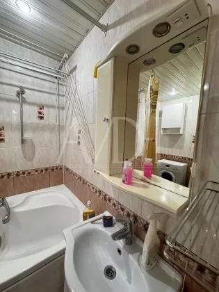 * Мебель и бытовая техника: кухонный гарнитур, газовая плита, вытяжка, холодильник, стиральная машина – все необходимое для комфортного проживания уже есть!